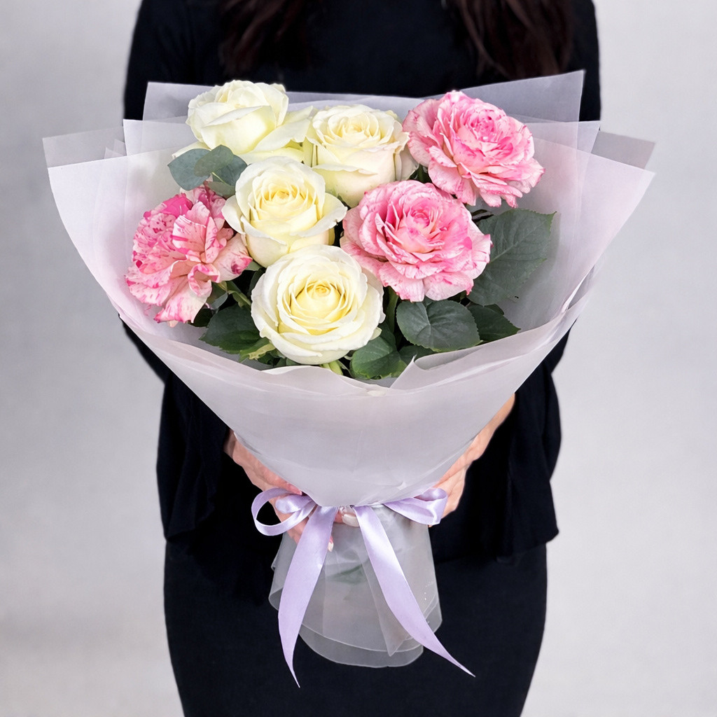 Изысканный букет из семи нежных белых роз — это символ чистоты, искренности и утончённой элегантности. Лаконичный и воздушный, он наполняет пространство светом и спокойствием, подчёркивая особое отношение к получателю. Такая композиция выглядит более пышно и торжественно, оставаясь при этом нежной и изящной. Букет идеально подойдёт для признания, знака внимания, поздравления или тёплого жеста без лишних слов.