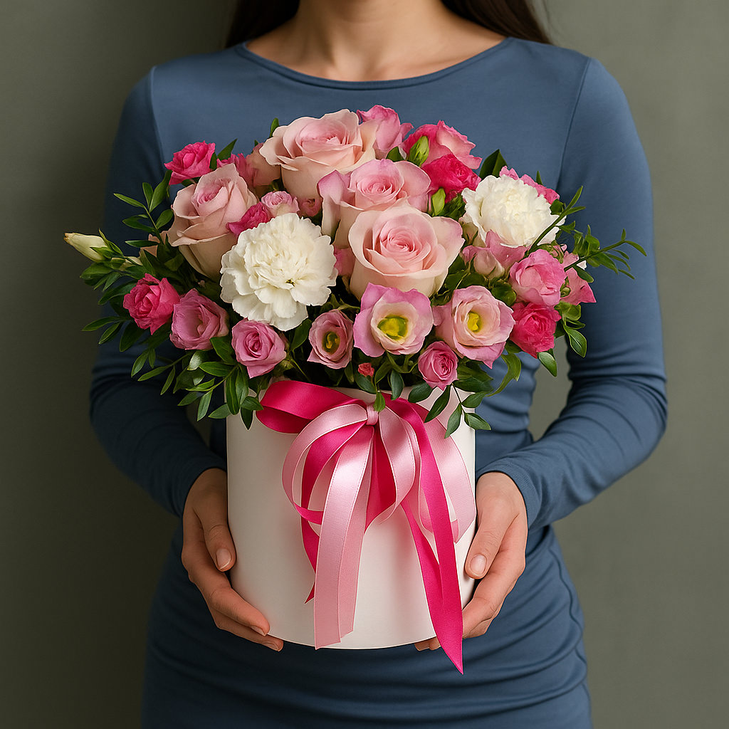 Изысканная композиция в мягких пастельных оттенках станет лучшим подарком для выражения нежных чувств и заботы. Идеальный вариант для дня рождения, юбилея или романтического сюрприза.